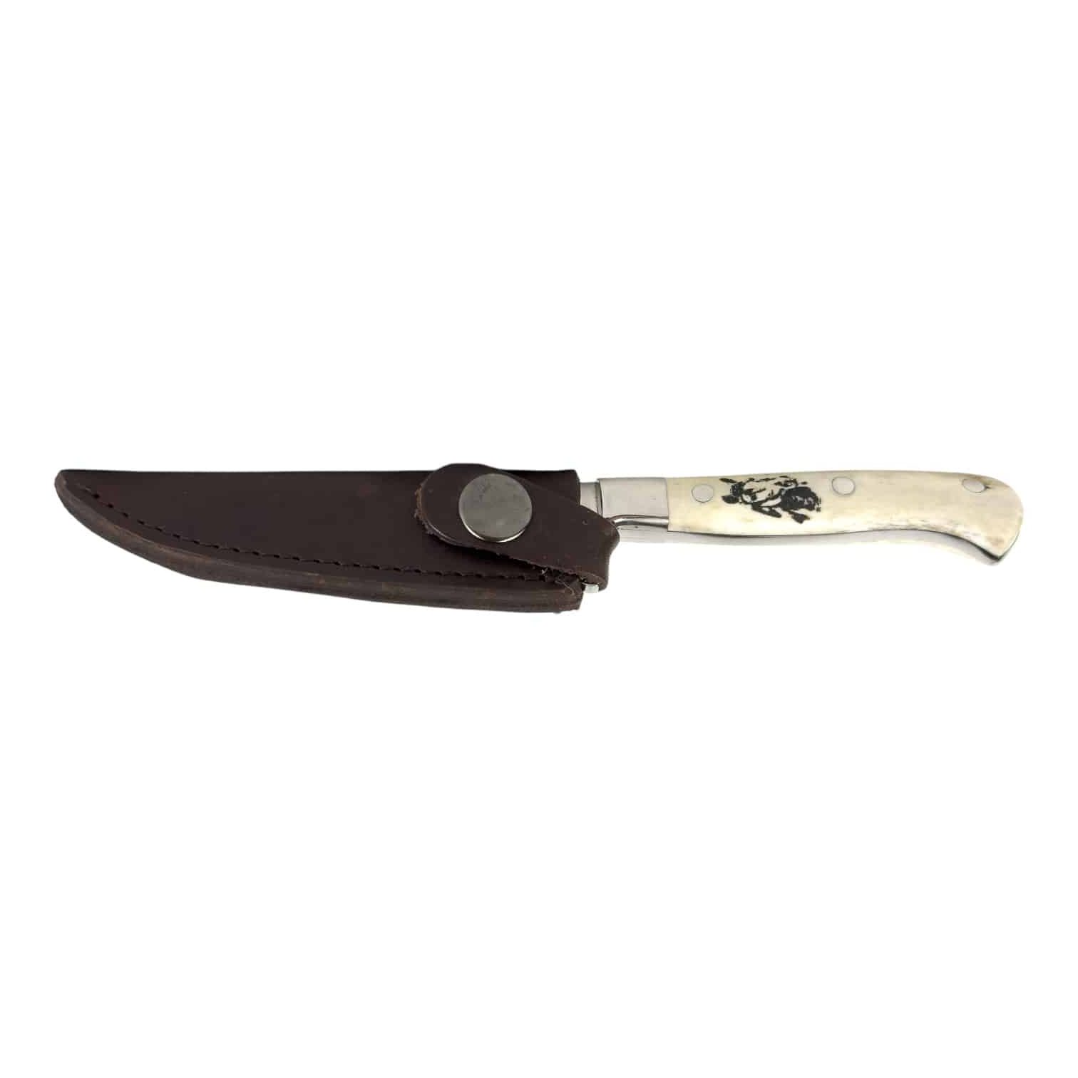 Bajorkés közepes csiszolt agancs markolattal gravírozott (vaddisznó)